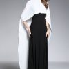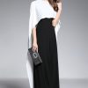 Women’s O Neck Sleeveless Floor Length Long Party Dresses with Cape Color Block Fashion Prom Gown