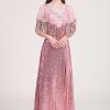 Women's Party Dress Low V Back Cape Detailing Tassels Shinning Split Elegant Long Prom Dresses - Image 5