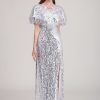 Women's Party Dress Low V Back Cape Detailing Tassels Shinning Split Elegant Long Prom Dresses - Image 14
