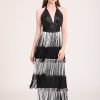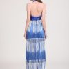 Women’s Party Dress Sexy Low V Back Sequined Bodice Spaghetti Straps Tiered Tassels Fashion Long Prom Dresses