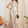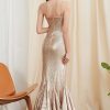 Women’s Party Dresses Spaghetti Straps Heavy Sequined Ruffles Sexy Split Fashion Prom Long Designer Dresses