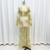 Women’s Party Prom Sexy V Neck Long Lantern Sleeves Embroidery Elegant Long Maxi Designer Dresses Vestidos