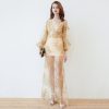 Women's Party Prom Sexy V Neck Long Lantern Sleeves Embroidery Elegant Long Maxi Designer Dresses Vestidos
