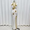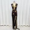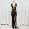 Women’s Party Prom Sexy V Neck Sleeveless Split Piping Beaded Appliques Elegant Designer Long Maxi Dress