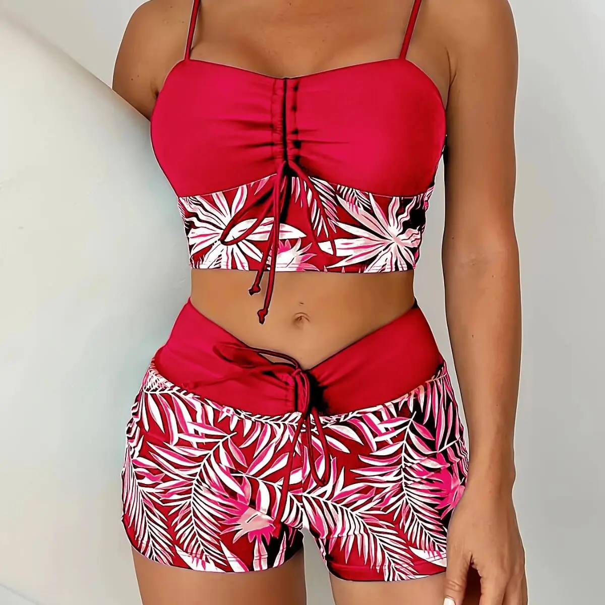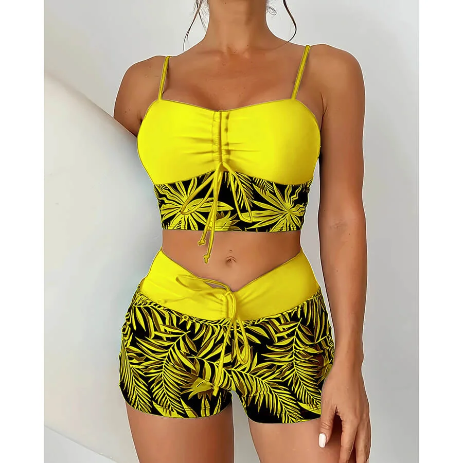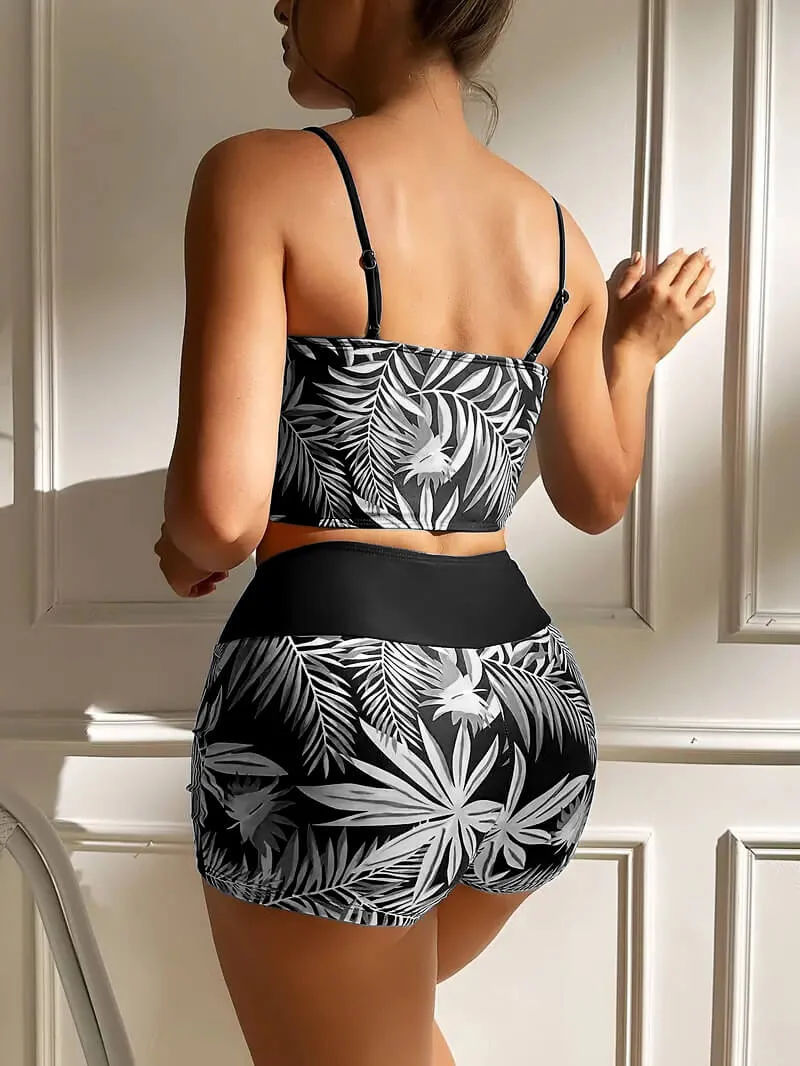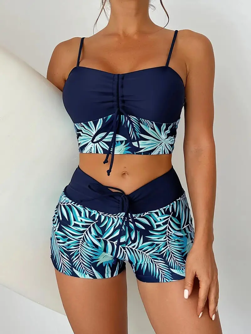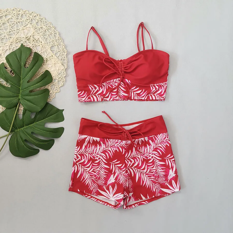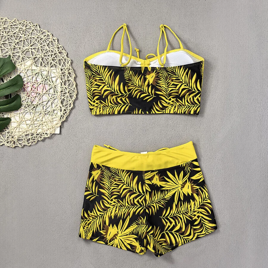 - Style: Two – piece swimsuit (top + boyleg bottoms)