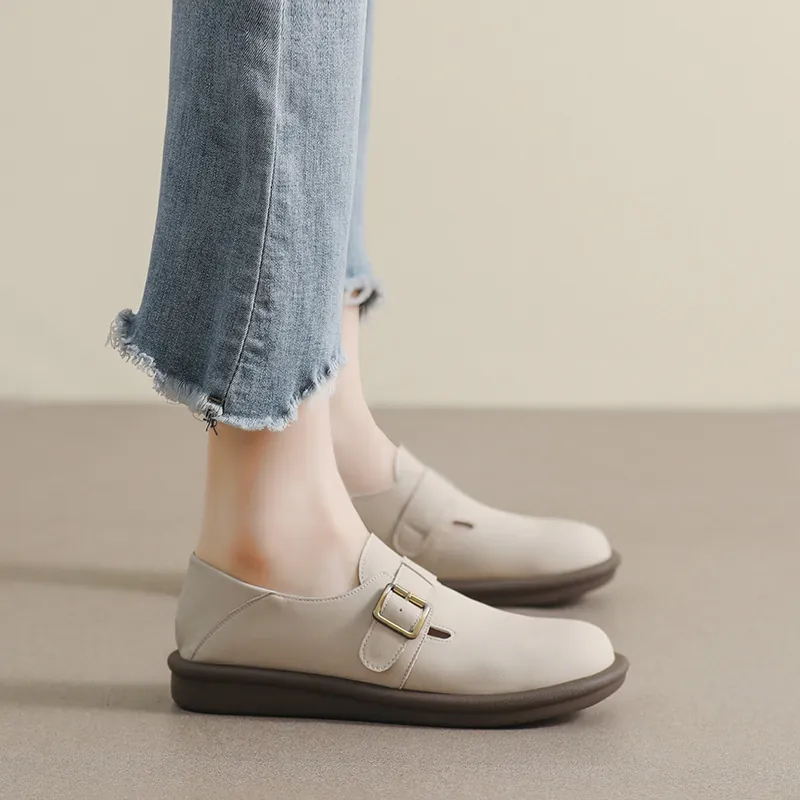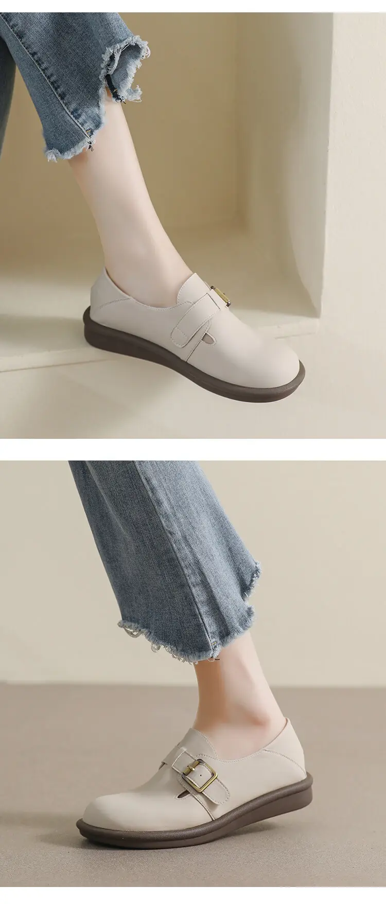 Womens Round Toe Buckle Loafers College All Season Comfy Shoes