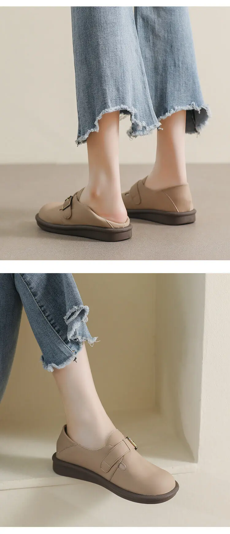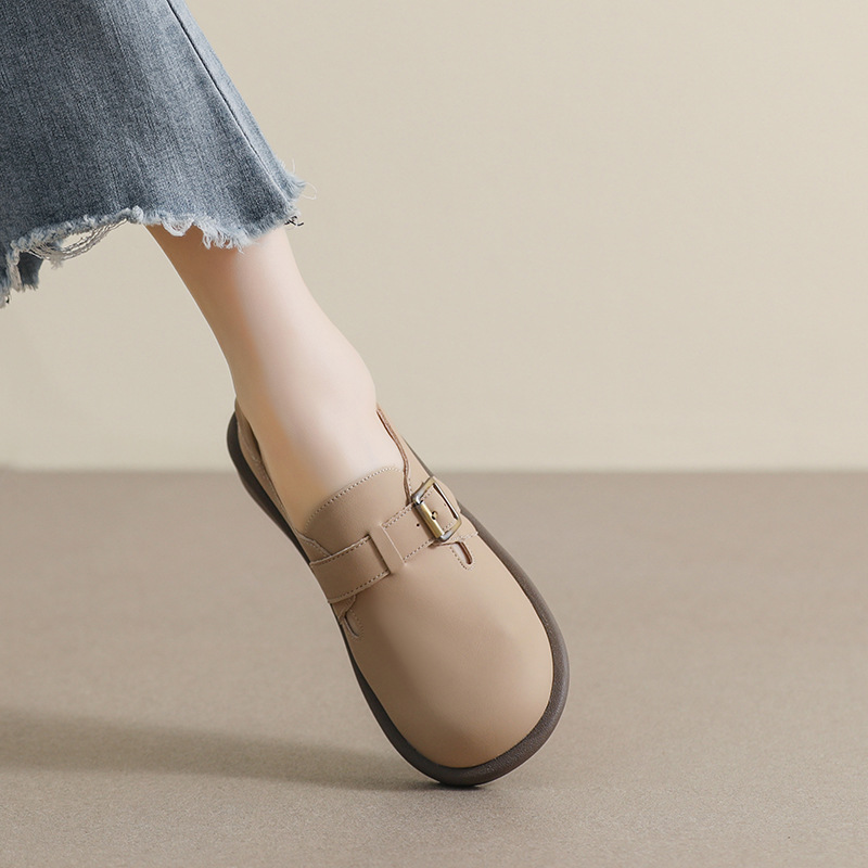 Step into effortless style with these Women’s Round Toe Buckle Loafers! Designed in a trendy preppy style, these all – season shoes feature a classic round toe, a chic belt buckle detail, and a low – top, deep vamp design for easy on – and – off. The microfiber upper and lining keep your feet cozy, while the rubber sole (with a PU insole) offers lasting comfort for daily wear—whether you’re heading to class, running errands, or meeting friends. Available in Apricot and Khaki, they’re the perfect blend of fashion and function for every season!