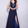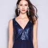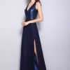 Women’s Runway Dresses Sexy V Neck Sleeveless Sequined Bodice Split Party Prom Fashion Long Dresses