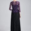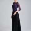 Women’s Runway Dresses O Neck 3/4 Sleeves Embroidery Lace Color Block Fashion Long Party Prom Dresses