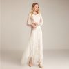 Women’s Runway Dresses O Neck Long Sleeves Embroidery Lace Beaded Waist Elegant Fahion Maxi Party Prom