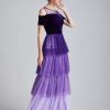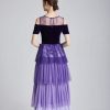 Women’s Runway Dresses O Neck Short Sleeves Sexy Off Shoulder Tiered Ruffles Patchwork Fashion Casual Party Prom Long Dresses