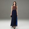 Women’s Runway Dresses O Neck Sleeveless Sequined Beaded Bodice Sexy Split Fashion Elegant Long Party Prom