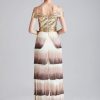 Women’s Runway Dresses Sexy Spaghetti Straps Sequined Patchwork Tiered Tassels Fashion Long Party Prom Dresses