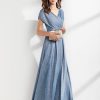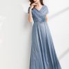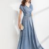 Women’s Runway Dresses V Neck Cape Sleeves Criss Cross Elegant Long Maxi Dress Party Prom