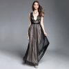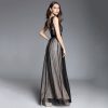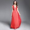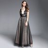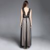 Women's Runway Dresses V Neck Sleeveless Sexy Low V Back Lace Patchwork Elegant Party Prom Long Designer Vestidos Dresses