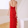 Women's Sexy Deep V Neck Sleeveless Ruched Waist Tiered Tassels Fashion Long Party Dresses Elegant Runway Prom Dress - Image 12