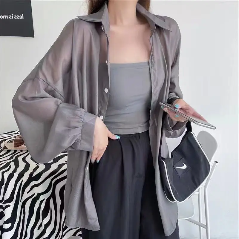 - Design: Polo collar, long regular sleeves, loose fit, single – breasted placket, patchwork/splicing, solid color