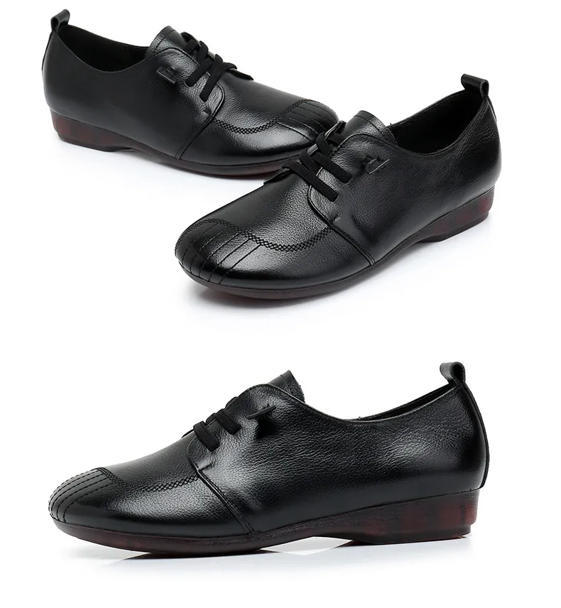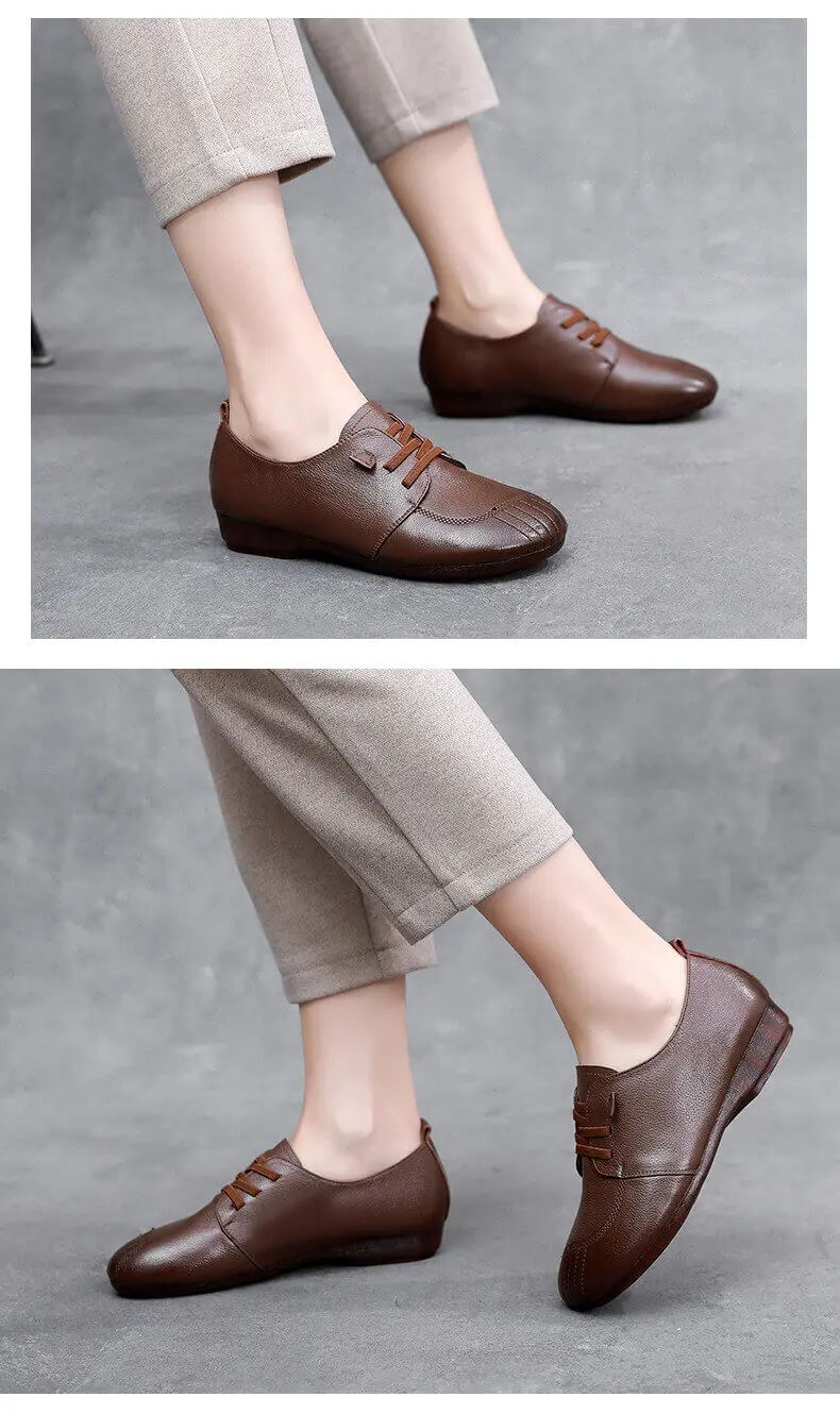Womens Soft Leather Vintage Loafers Flats Wide Spring Fall Casual Lace-Up