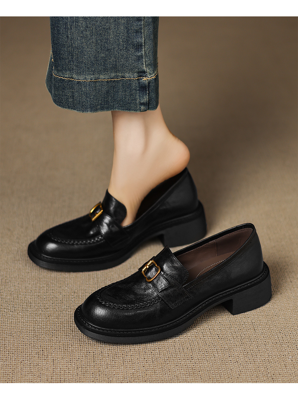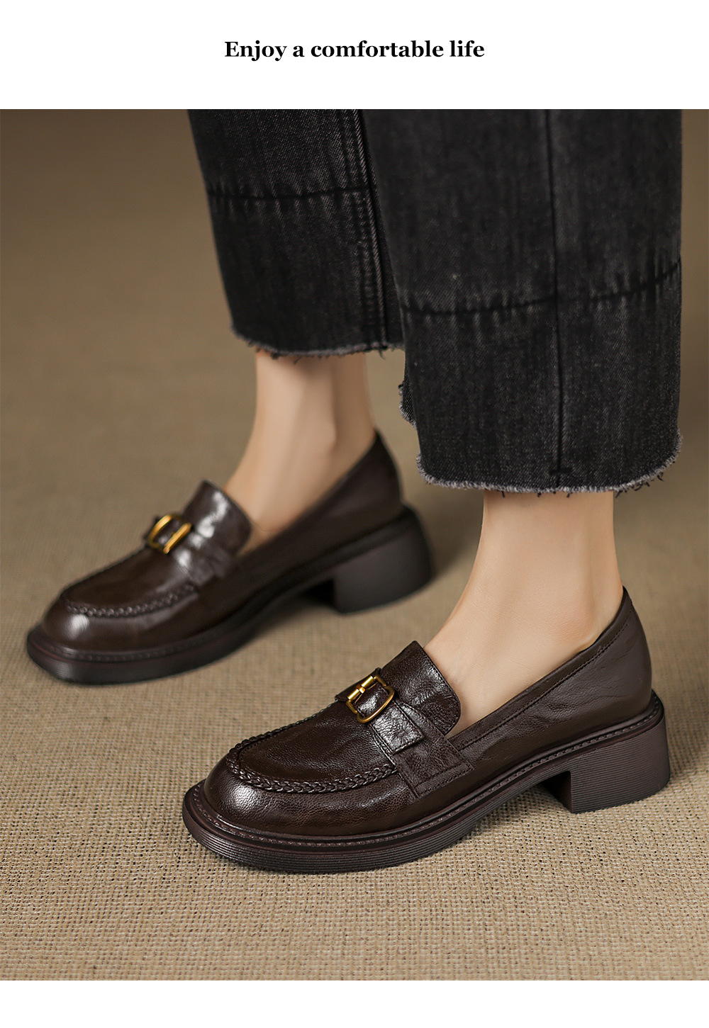 - Style: Loafers (Slip – on), Thick Heel Style