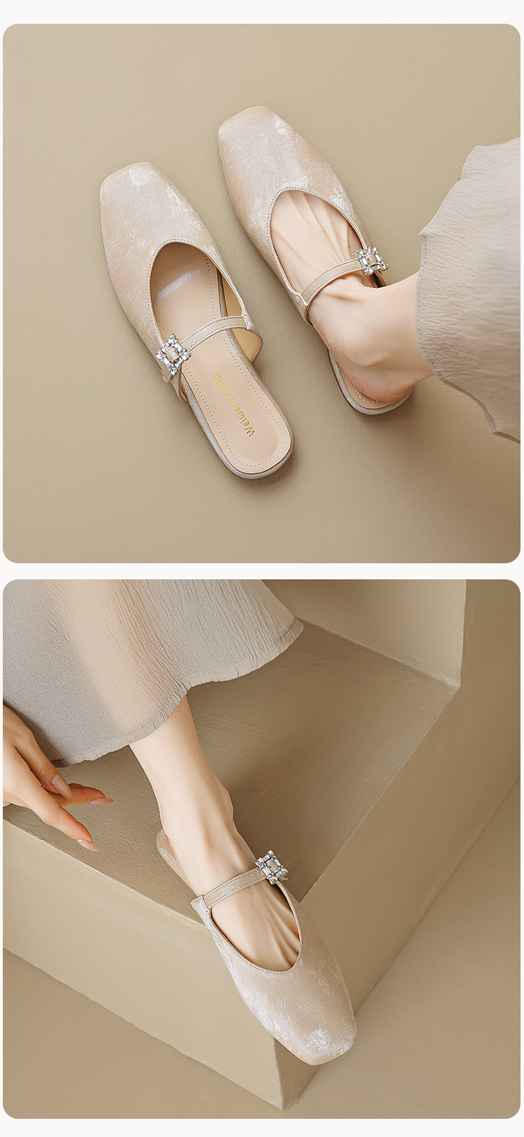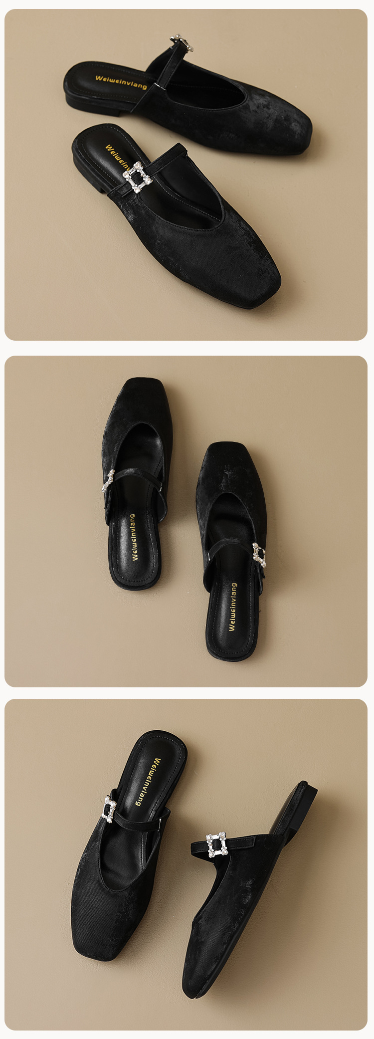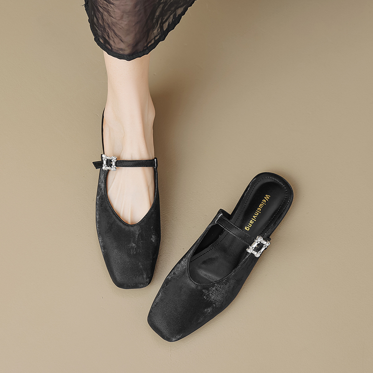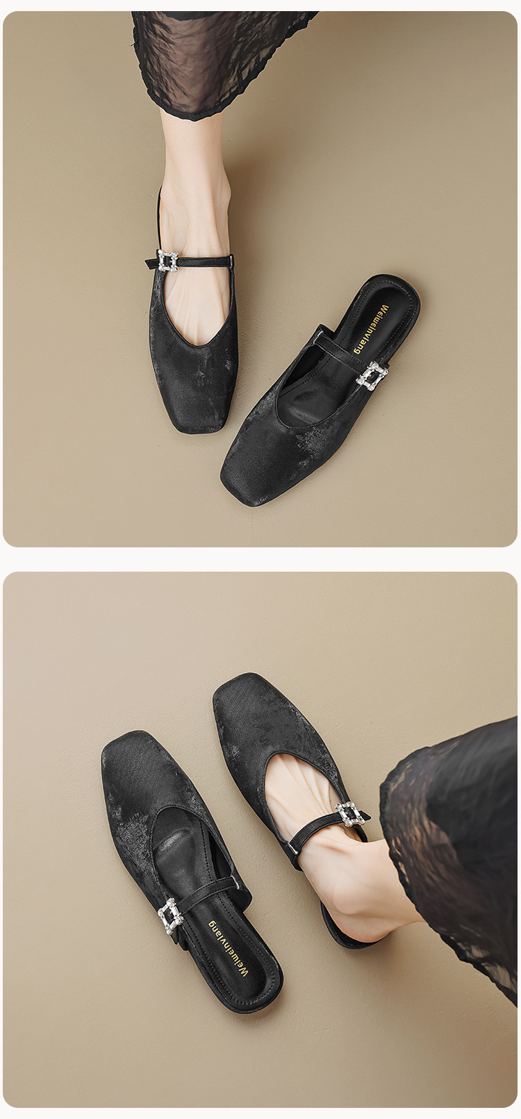 These women’s square – toe flat mules bring effortless style to your summer days! The satin upper feels soft, while the ankle strap with a decorative buckle keeps them secure. Slip them on easily for daily errands or casual outings—their flat heel and breathable design ensure all – day comfort. Perfect for pairing with dresses, jeans, or shorts, they add a chic touch to any warm – weather look.