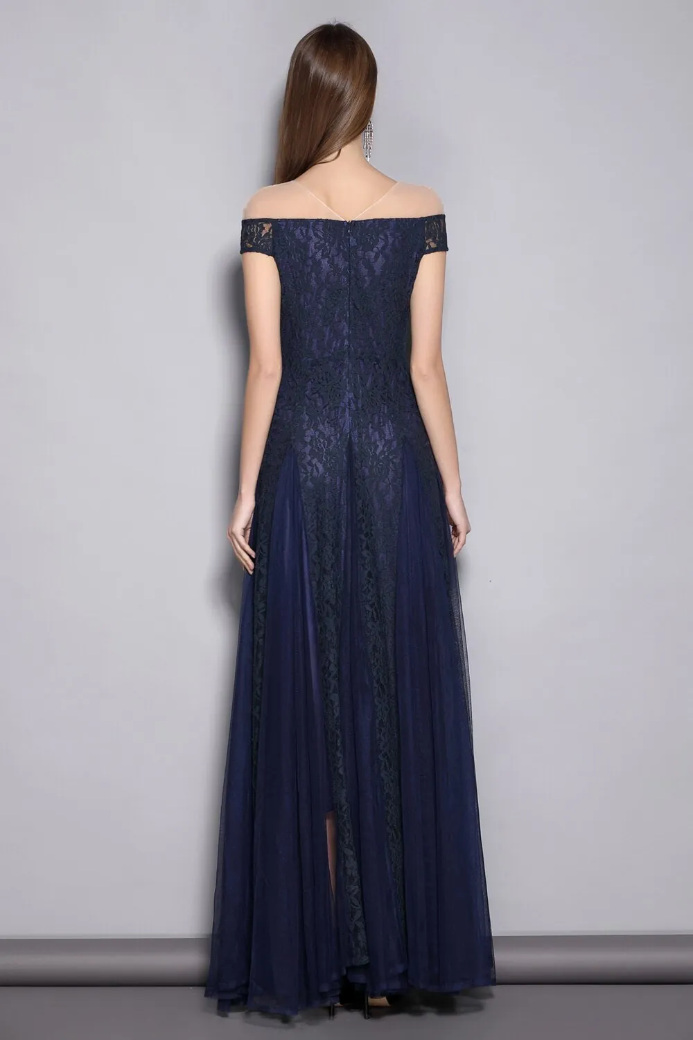 Women’s V Neck Short Sleeves Embroidery Lace Elegant Party Prom Sexy Mesh Laid Over Elegant Long Runway Dresses