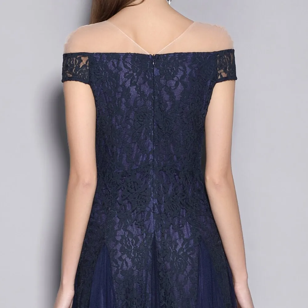 Women's V Neck Short Sleeves Embroidery Lace Elegant Party Prom Sexy Mesh Laid Over Elegant Long Runway Dresses - Image 8