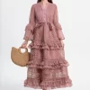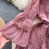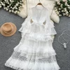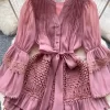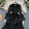 - Design Details: V-Neck, Flare Sleeve, Lace Decoration, A-LINE Silhouette