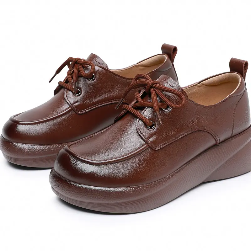 Step into vintage charm with these women’s leather loafers! Crafted from top – grain leather, they feature a lace – up front, round toe, and a platform wedge heel (3 – 5cm) for a trendy lift. Perfect for daily wear in spring and autumn, these low – top shoes blend classic British style with modern comfort. Available in black and dark brown, they suit sizes 35 – 43 for a tailored fit.