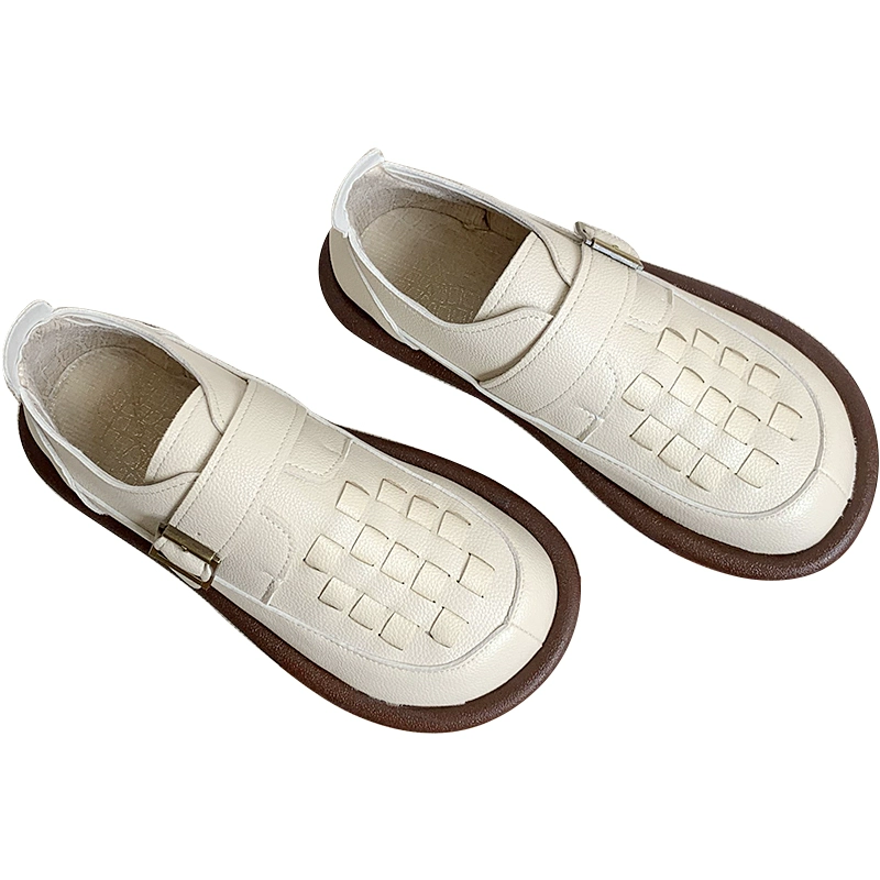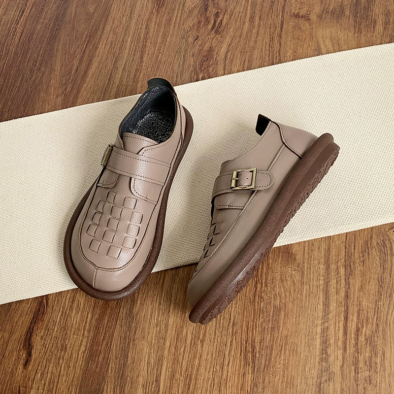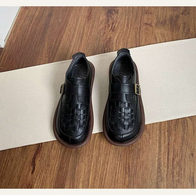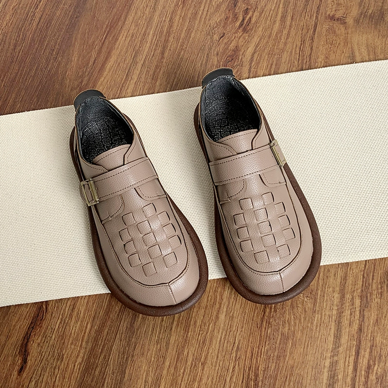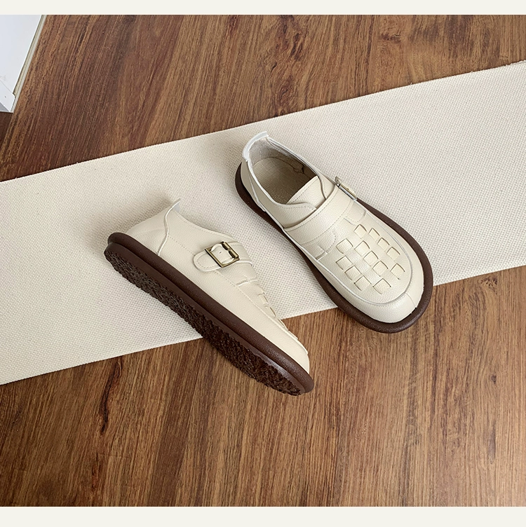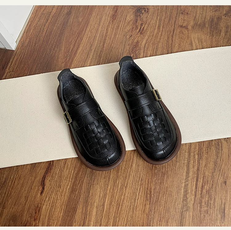Womens Woven Buckle Loafers Round Toe Soft Rubber Sole Slip-On Casual Shoes