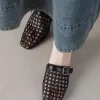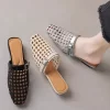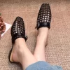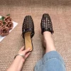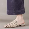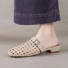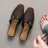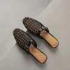 Step into effortless sophistication with these summer-ready woven leather mules. Designed with a French minimalist touch, they feature a chic closed-toe silhouette and breathable cutout weave—perfect for warmer days without sacrificing polish. Made from premium top-grain cowhide with a soft pigskin leather lining and insole, these mules offer luxurious comfort and refined structure.